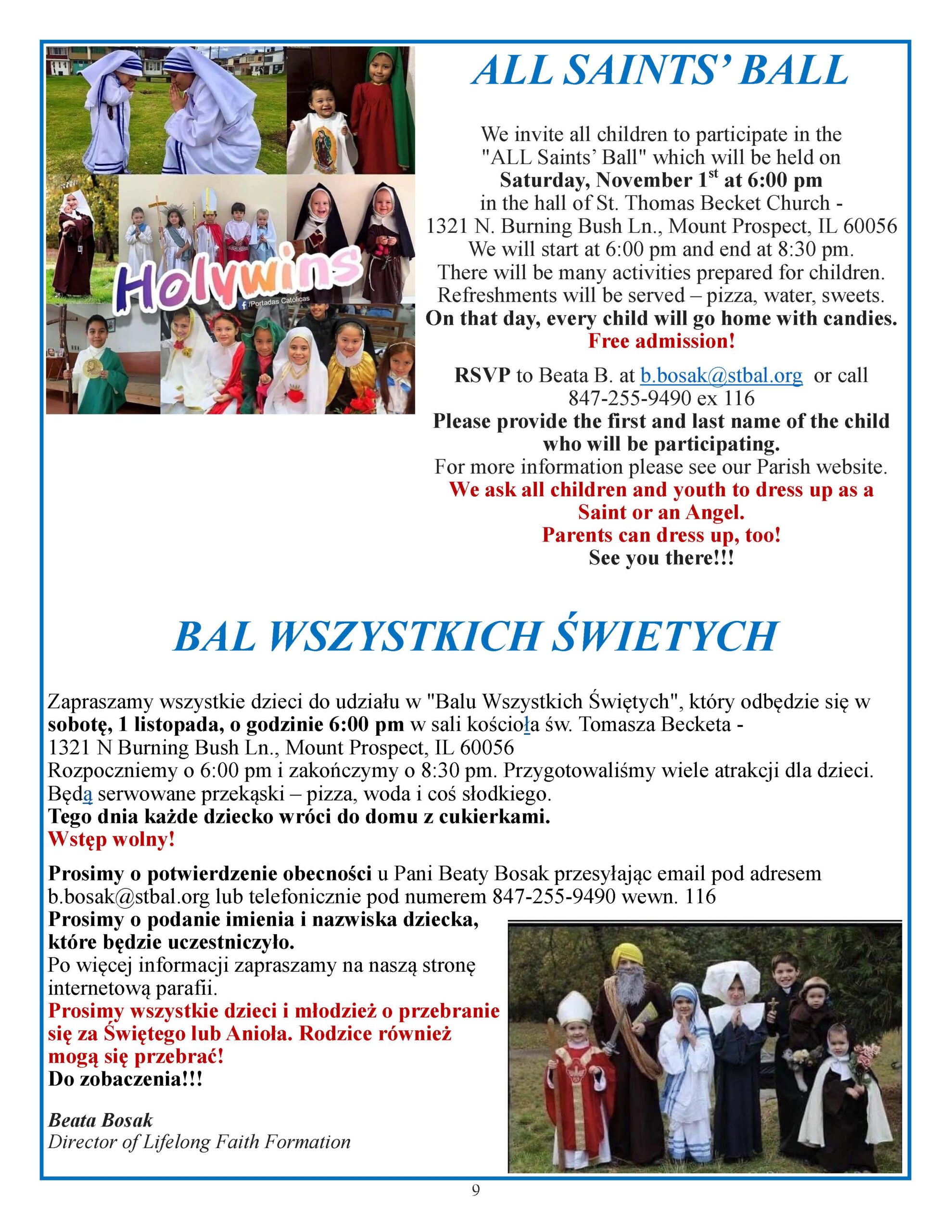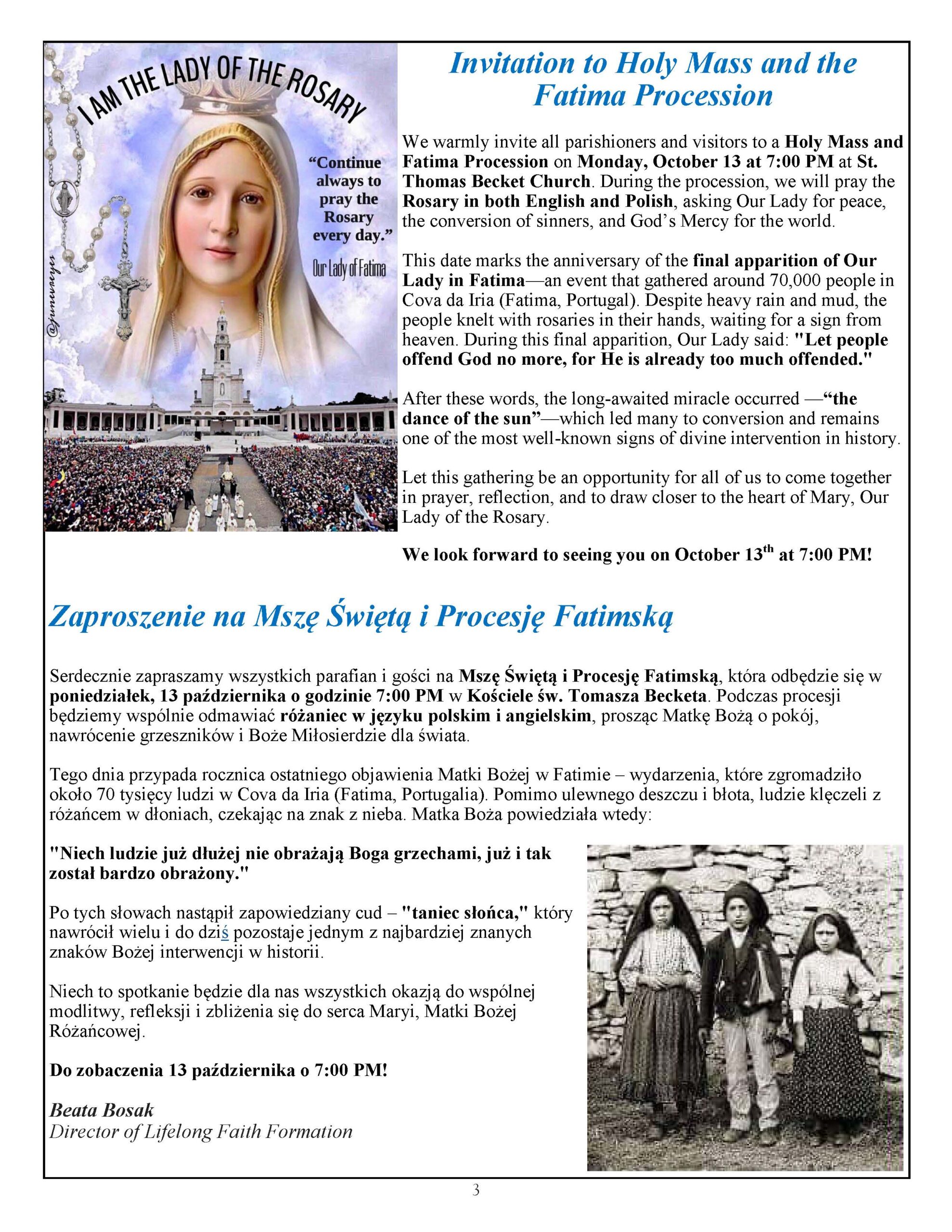 Wednesday and Friday – Mass at St. Thomas Becket at 7pm in Polish