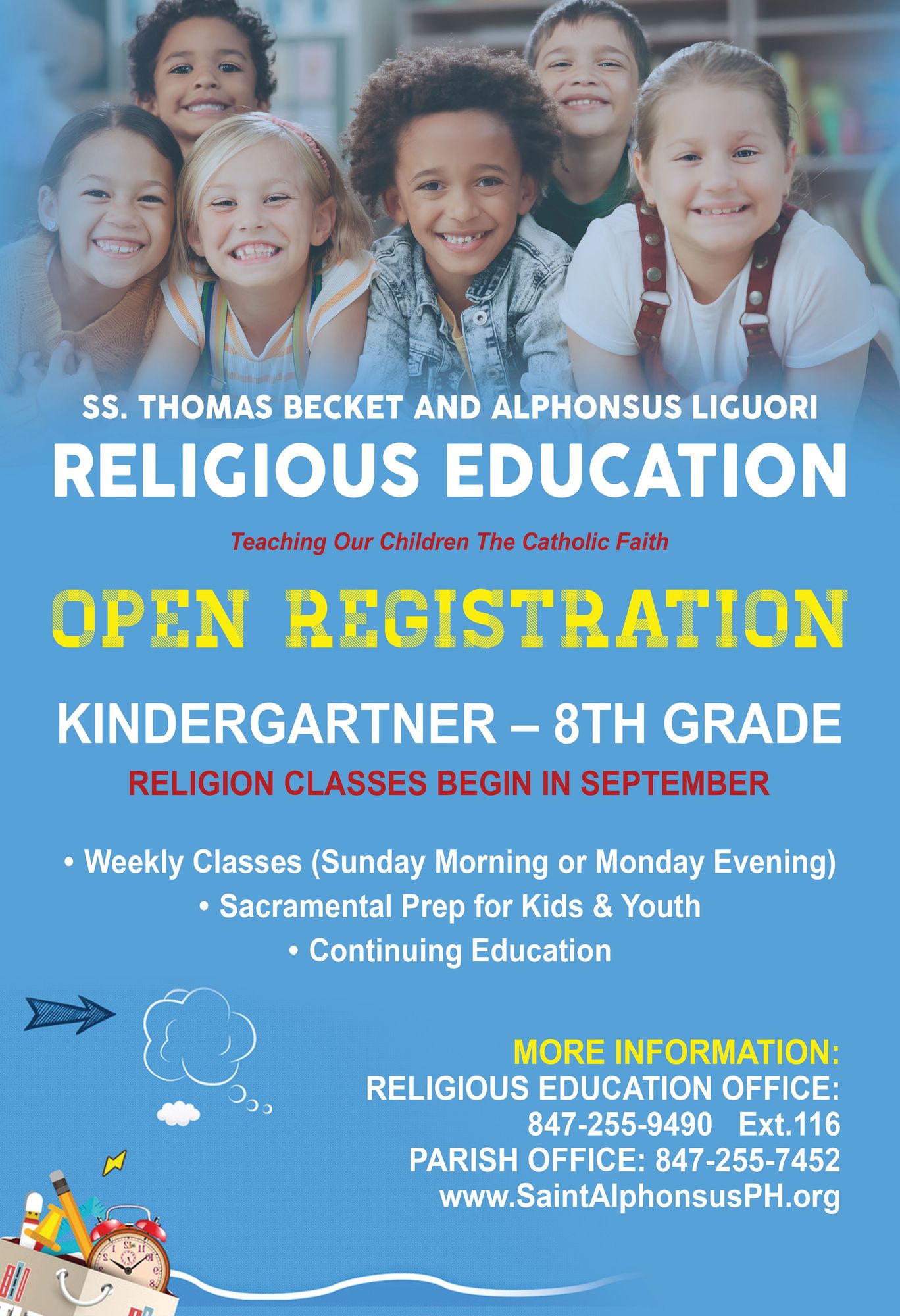 DAILY MASS SCHEDULE SEPT.- MAY: Monday thru Saturday – Mass at St. Alphonsus at 8:15am